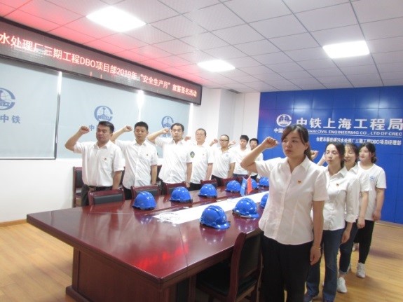 合肥蔡田鋪污水處理廠三期工程:組織全體員工進行2019年“安全生產月”集體宣誓簽名活動。合肥蔡田鋪項目部目前處于土方施工階段,6月份將進入施工大干期間,安全生產是項目能夠按期完在的必要條件。為確保工程順利施工、按期完工,項目部以“安全生產月”宣誓為契機,引導全體職工把安全生產、質量管理放在重要位置,進一步提升安全生產責任意識。(朱天娥)