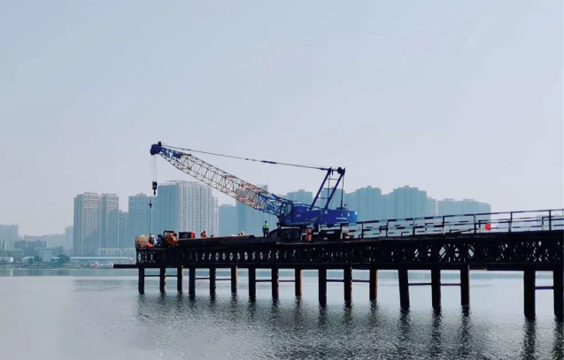 項目部自復工以來,積極與武漢市東湖高新技術開發區管理委員會及公安局交通大隊進行交涉,不斷優化交通疏解方案,解決南湖大道段道路狹窄車流量較大、道路綠化遷移保護等問題。在8月29日得到《交通疏解放行許可決定書》后項目部迅速組織人、機、料開始正式打圍施工。