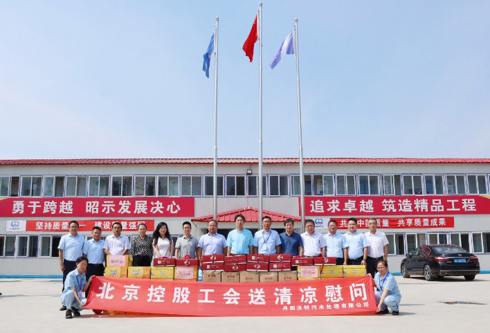 9月9日,北京控股紀委書記王永軍一行到丹陽沃特污水處理廠改擴建工程調研慰問,公司工會主席、副總經理吳衛東,副總經理岳立章陪同。