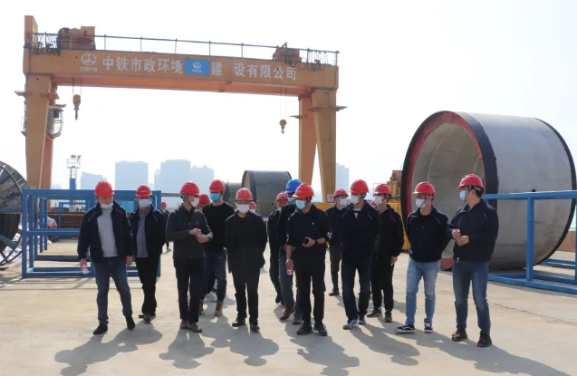 觀摩期間,王繼武一行實地察看了現場安全文明施工情況,聽取了項目負責人對施工進展、現場管理、面臨的重難點問題等方面的詳細匯報。王繼武就施工現場放置的DN3500F型混凝土管結構、頂管進排泥系統工作原理與項目負責人進行了交流。觀摩最后,王繼武對項目現場的安全文明施工建設表示高度贊許,并對工程DN3500穿湖頂進貫通表示祝賀。