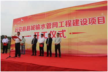 9月29日上午,公司中標(biāo)的宜昌市遠(yuǎn)安縣縣城輸水管網(wǎng)工程在管線的起點舉行了開工儀式。遠(yuǎn)安縣縣委副書記、縣長蘇海濤,縣委常委、副書記張俊,縣委常委、常務(wù)副縣長肖鵬飛,縣政協(xié)副主席、工程建設(shè)副指揮長梅昌許,公司總經(jīng)理鄧永馳,以及遠(yuǎn)安縣縣直相關(guān)單位,工程監(jiān)理、工程設(shè)計等部門出席開工儀式。開工儀式由遠(yuǎn)安縣常務(wù)副縣長肖鵬飛主持。