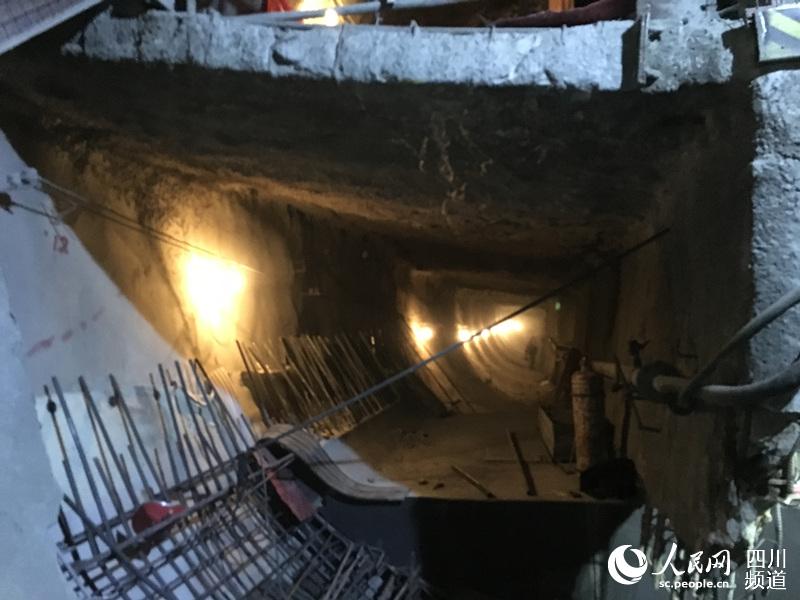 在成都二環(huán)路北一段高架橋的下方,地鐵七號線西南交大站—九里堤站的隧道正在施工,橋基從隧道旁“擦肩而過”,最近的地方僅有2.8米。為了保證路面交通暢通和高架橋的穩(wěn)定,地鐵施工放棄盾構(gòu)機,首次采用雙側(cè)壁導坑法分六步,人工開挖。