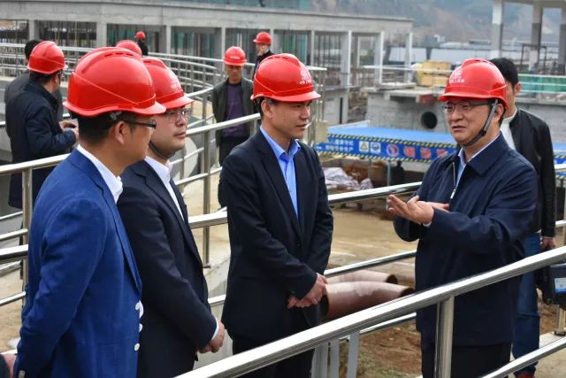3月15日上午,浙江省建設廳廳長項永丹來到由中鐵上海工程局集團市政公司承建的嵊新污水處理廠二期擴建工程項目調研,嵊州市市委書記孫哲君陪同。